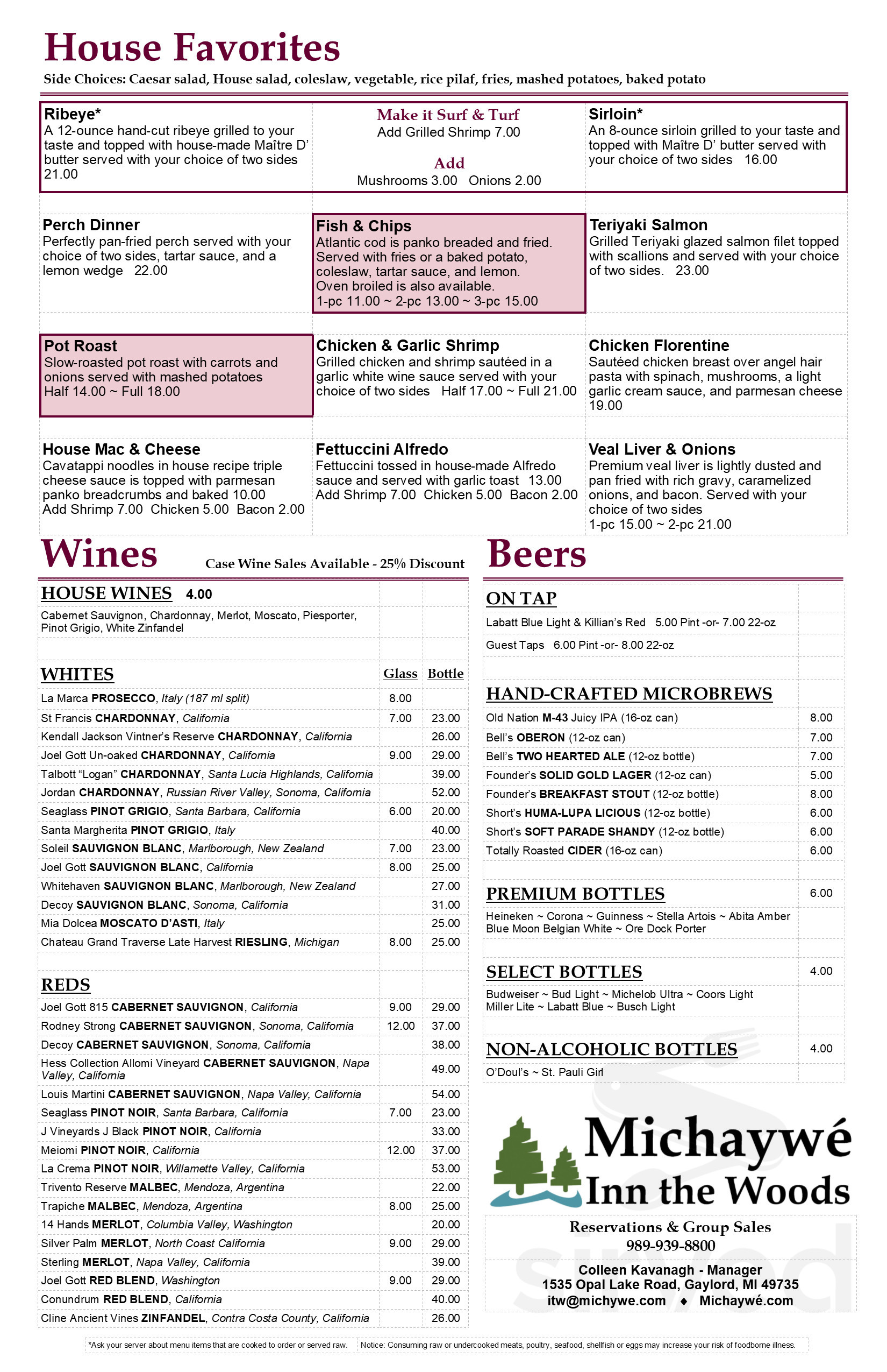 Michaywe Pines Golf Course Menu In Gaylord Michigan Usa