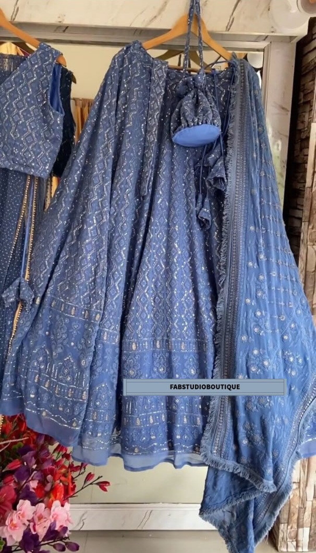 Powder Blue Lehenga Choli For Women Designer Lucknowi Etsy Sweden