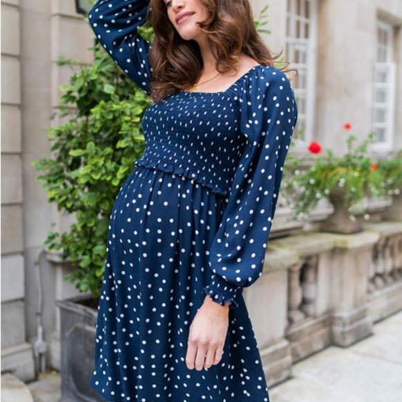 Seraphine Dresses Seraphine Maternity Navy Blue Maternity Nursing Dress White Polka Dots Size 6 Poshmark
